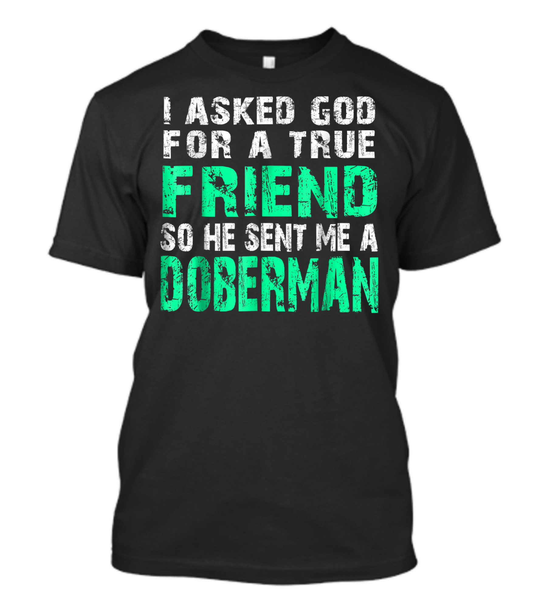 I Asked God for a True Friend So He Sent Me a Doberman tee shirt is designed for everyday comfort and lasting wear. Crafted in the USA, it combines soft, pre-shrunk ring-spun cotton with durable construction to ensure a consistent fit and feel, wash after wash. Available in a wide range of sizes (S-5XL).